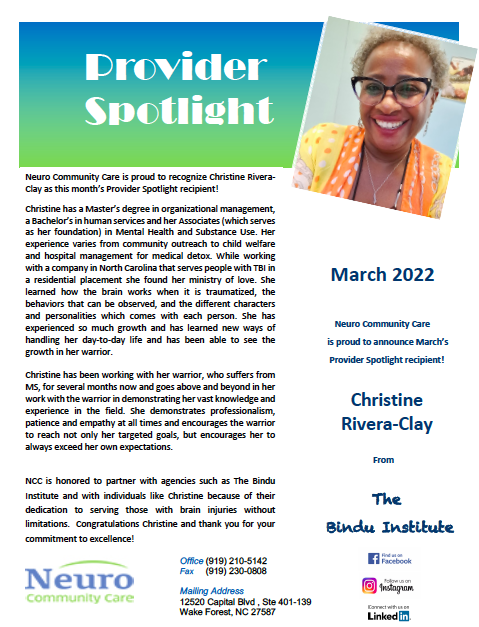 Professional Development Opportunities March 2022 March is Brain Injury Awareness Month! To kickoff this month, Neuro Community Care will be participating in Raleigh, North Carolina’s First Friday Art Walk…