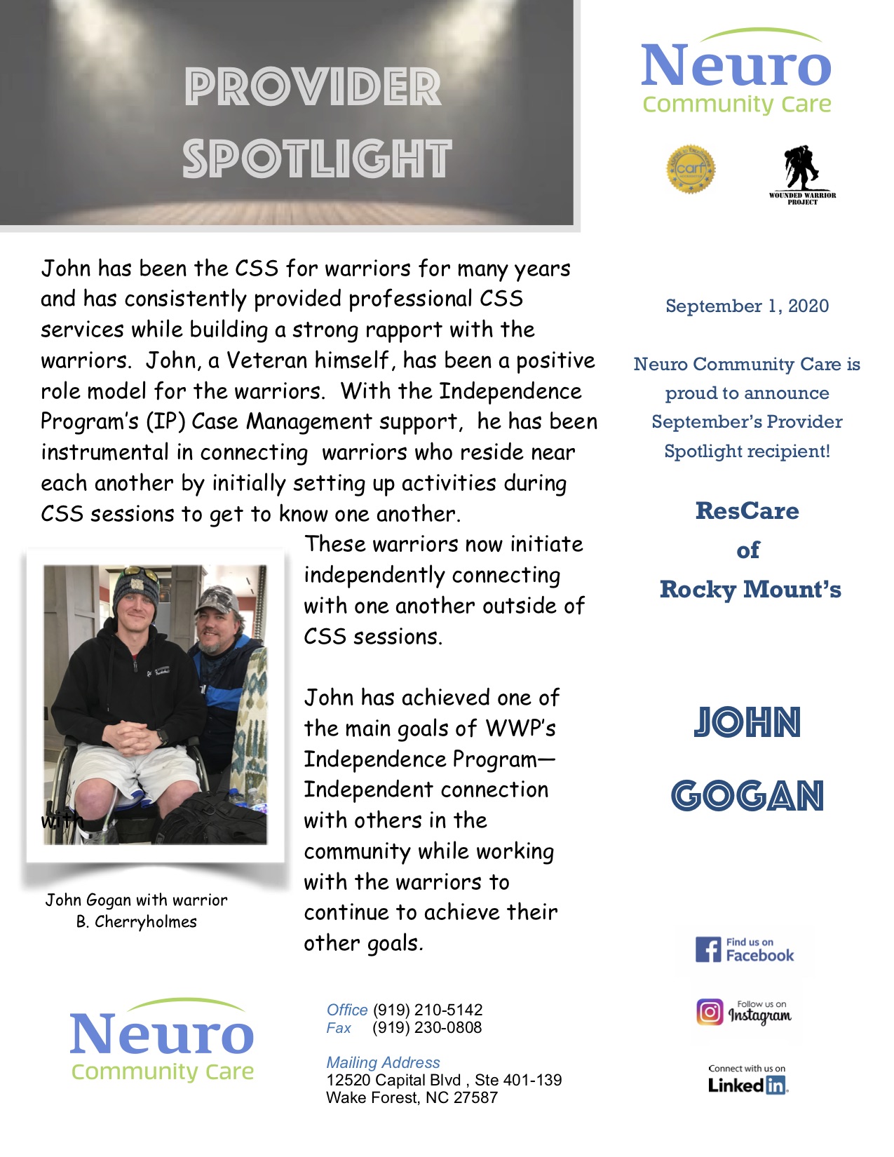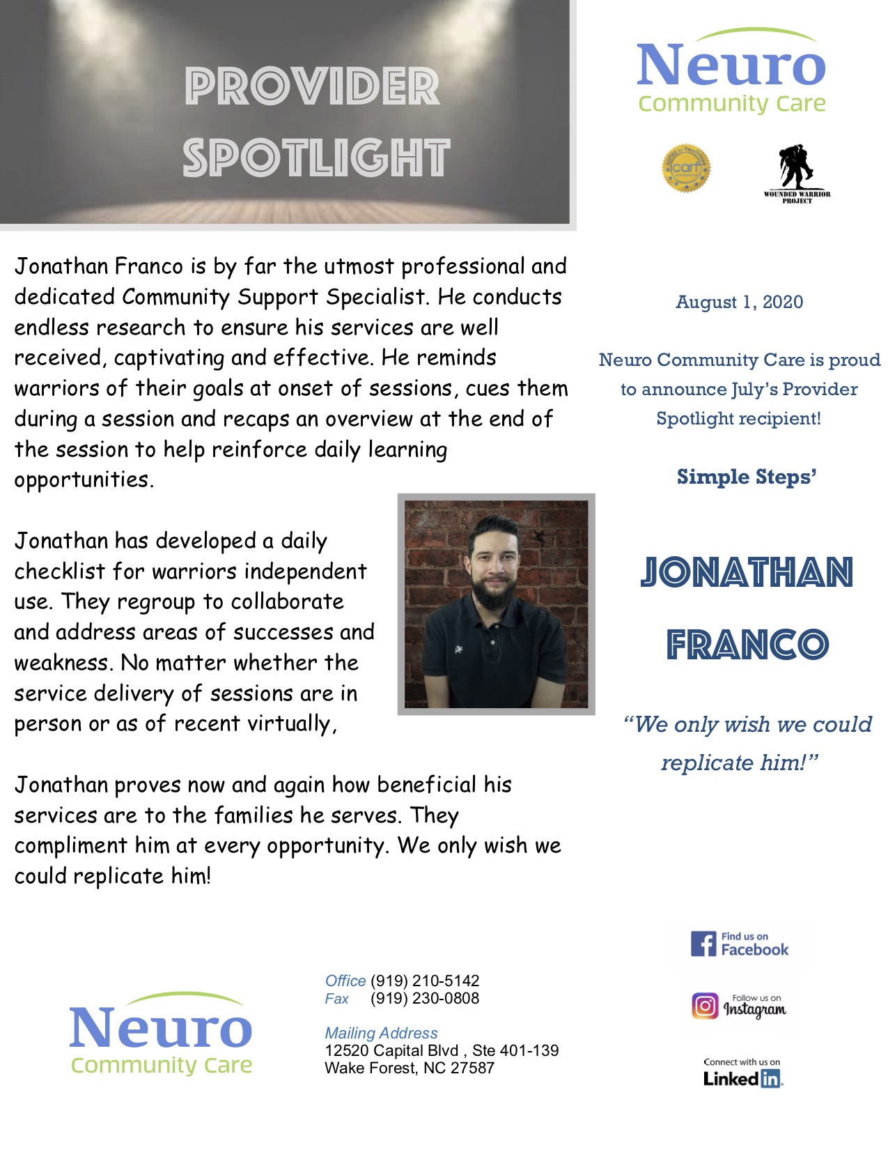 NCC NEWS AND UPDATES Throughout the past month, Neuro Community Care staff has been busy developing supports for providers, warriors, and their families. Our provider webinar series focused on best…
