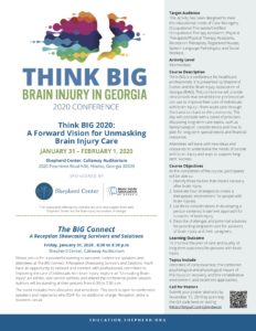 Think Big – Brain Injury Conference in GA Posted on December 2, 2019 by Mavidea NCC is a proud sponsor of this year’s THINK BIG- Brain Injury Conference in Georgia. See the link below for details! Think Big 2020-Flyer-FINAL for web 10-1-19